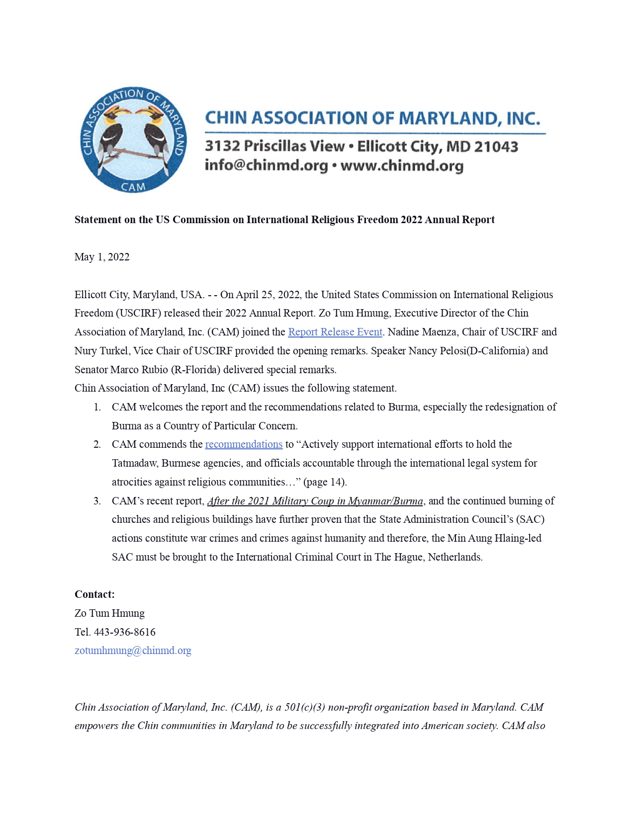 Statement on the US Commission on International Religious Freedom 2022 Annual Report