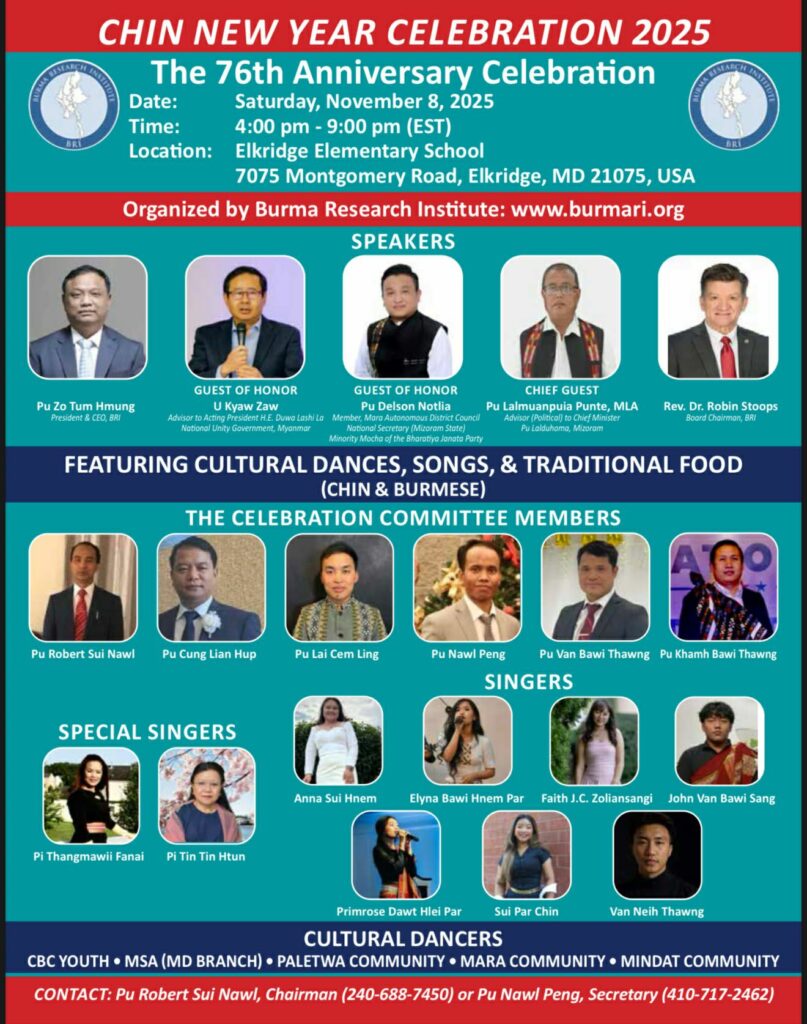 On March 17, 1949, the Chin Affairs Council made a resolution that the Chin New Year would be an official holiday celebrated from October 26 to October 28. This public holiday was observed in Chin State until General Ne Win’s military coup in 1962. This year will mark the 75th Anniversary of the first Chin New Year celebration. [Click here for more information about Chin New Year in Burmese. Source: Pu Lian Cin]