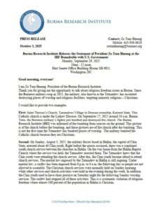 PRESS RELEASE: Burma Research Institute Releases the Statement of President Zo Tum Hmung at the IRF Roundtable with U.S. Government