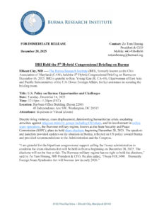 PRESS RELEASE: BRI Held the 5th Hybrid Congressional Briefing on Burma on December 16, 2025